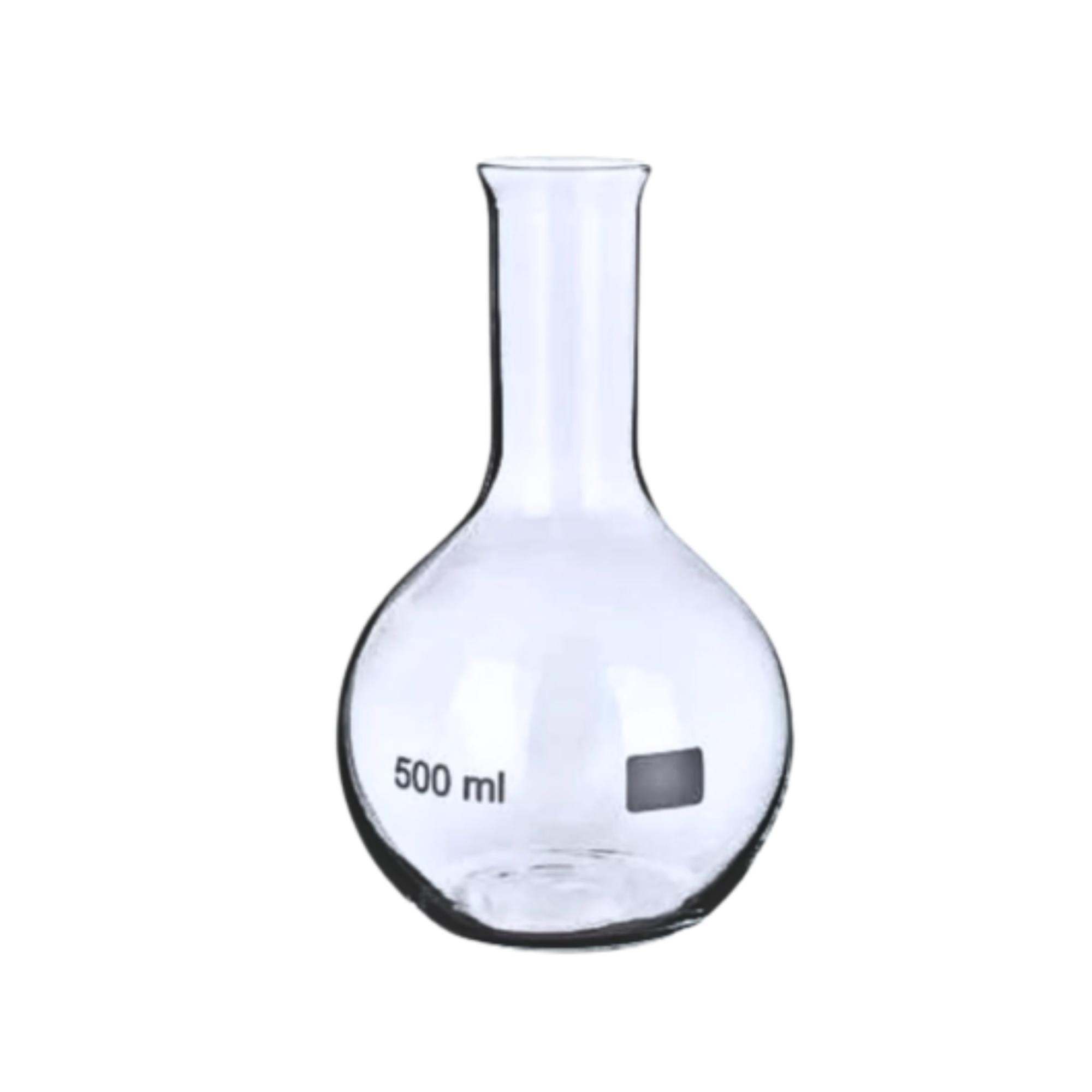 Balão em Vidro Fundo Chato Gargalo Longo Sem Junta