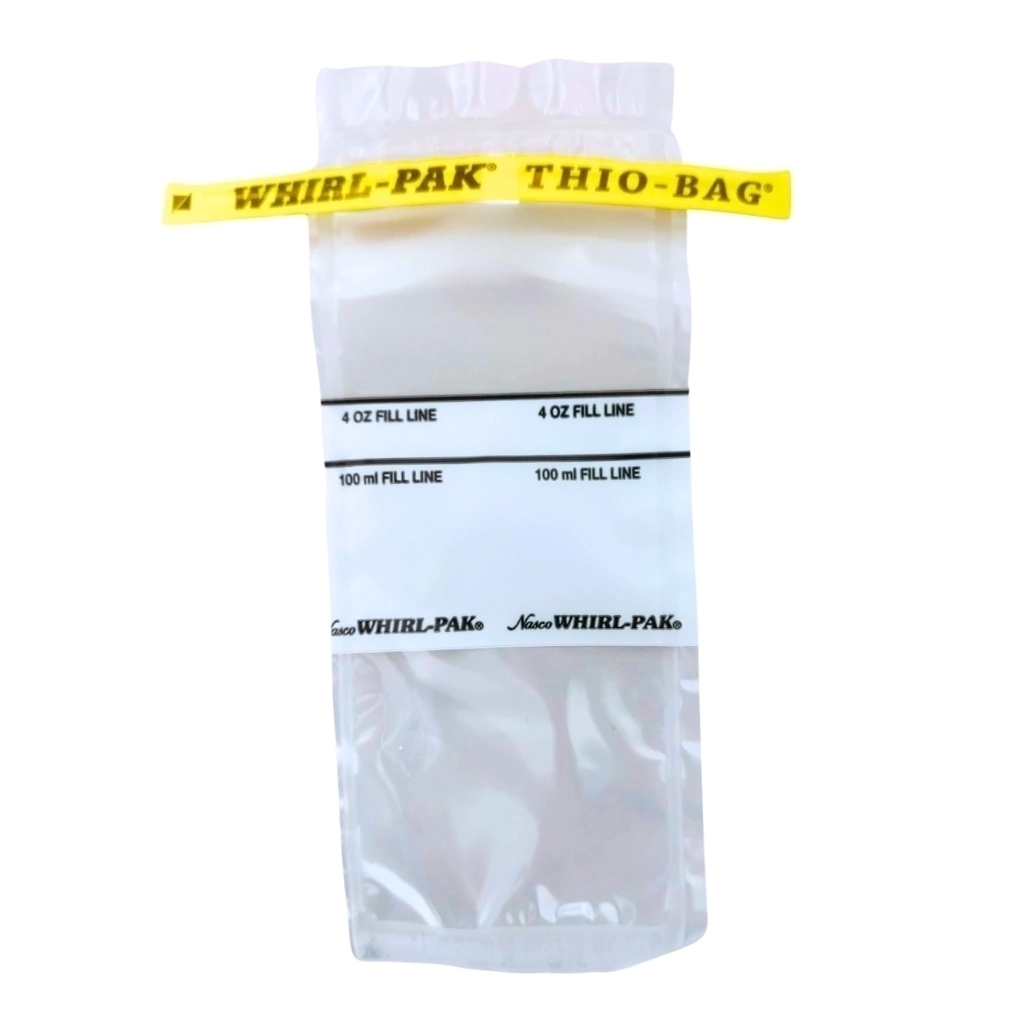 O trabalho de coleta de amostras de água é mais fácil com o Whirl-Pak® Stand-Up Thio-Bag®! Um reforço especial no fundo da bolsa se achata quando a água é colocada na bolsa, permitindo que ela se levante completamente sozinha. Nenhum rack ou outro suporte é necessário para manter a bolsa na posição vertical. Esqueça lavar e esterilizar garrafas de vidro e descartar frascos caros. Estéreis e inquebráveis, esses sacos economizarão tempo e dinheiro, seja trabalhando no laboratório ou no campo. Cada saco contém 25 mg de tiossulfato de sódio ativo para neutralizar o cloro na amostra.