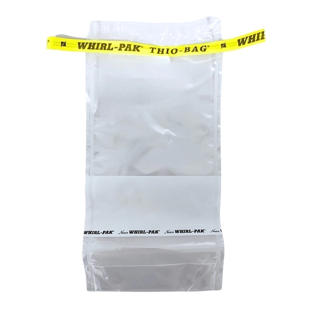 O trabalho de coleta de amostras de água é mais fácil com o Whirl-Pak® Stand-Up Thio-Bag®! Um reforço especial no fundo da bolsa se achata quando a água é colocada na bolsa, permitindo que ela se levante completamente sozinha. Nenhum rack ou outro suporte é necessário para manter a bolsa na posição vertical. Esqueça lavar e esterilizar garrafas de vidro e descartar frascos caros. Estéreis e inquebráveis, esses sacos economizarão tempo e dinheiro, seja trabalhando no laboratório ou no campo. Cada saco contém 25 mg de tiossulfato de sódio ativo para neutralizar o cloro na amostra.