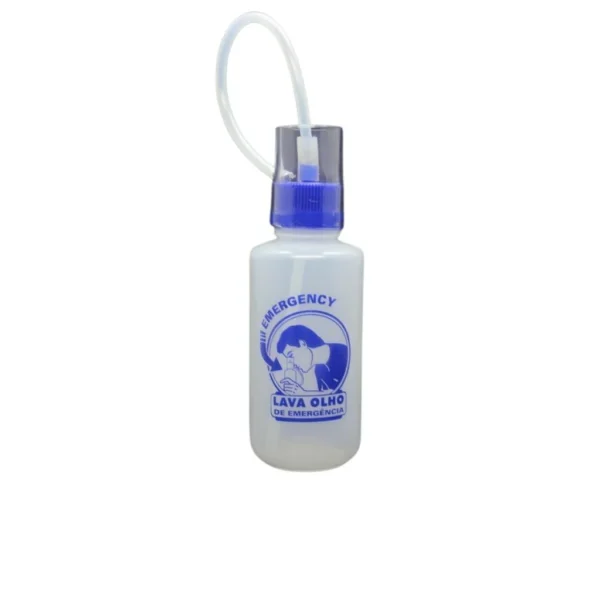 Sistema fácil e seguro na lavagem do olho em acidentes com produtos químicos, pó e até com corpos estranhos.