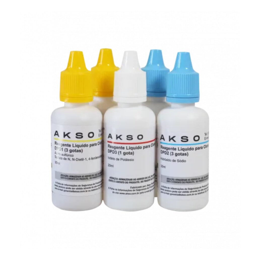 Kit de reagentes com 300 testes para medição de cloro livre e total.